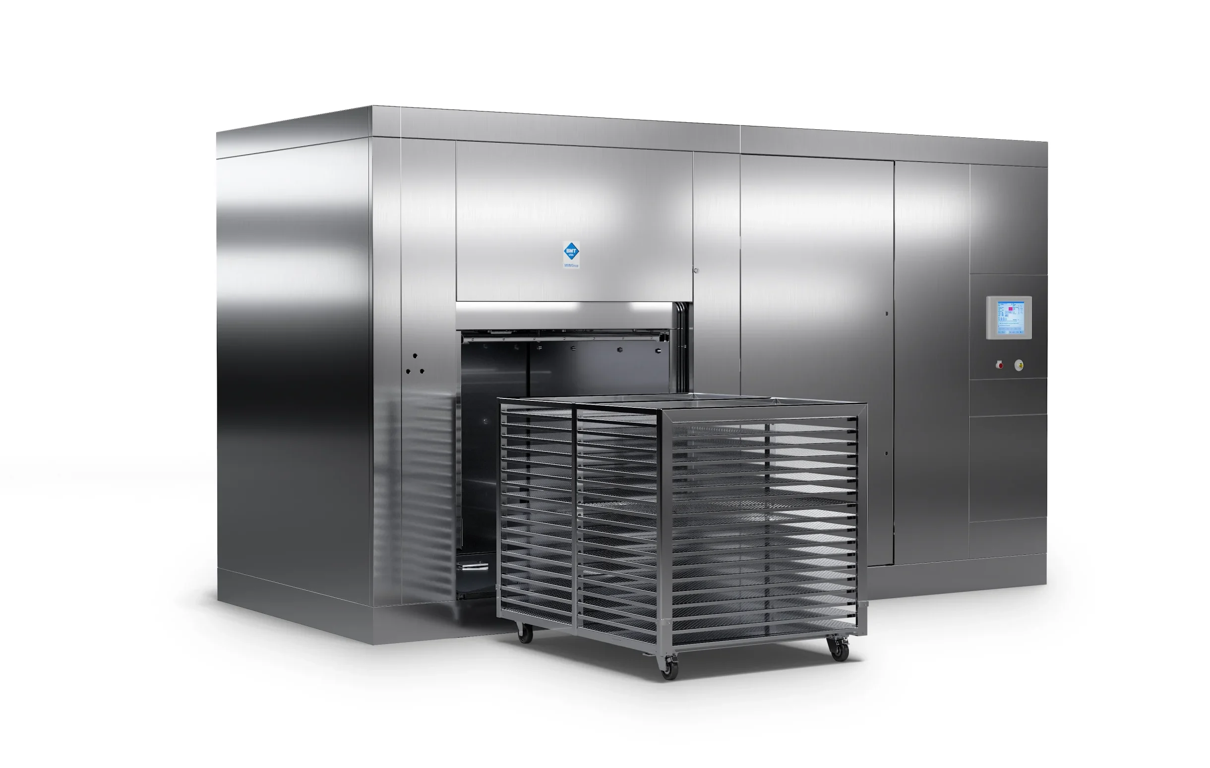 BMT USA manufactures stainless steel loading equipment in standard or custom designs to accommodate loads of any size, shape or weight. Our smaller chamber sizes can be equipped with wire or perforated shelves and loading racks, while larger chambers can be equipped with carts and transfer trolleys.